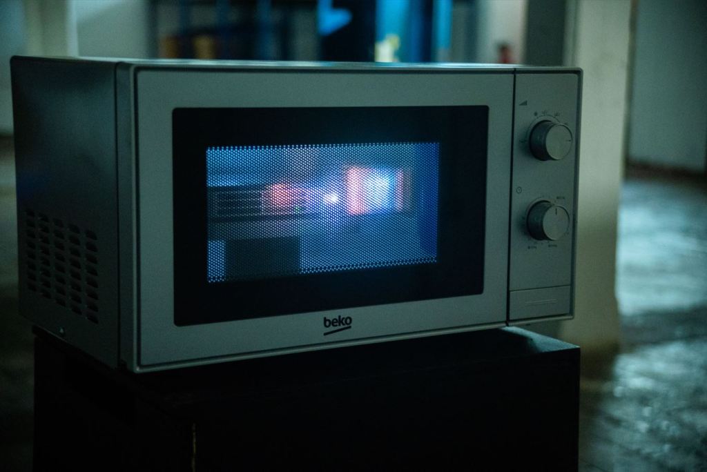 The film reveals fragments of domestic spaces, which seem to come from the memory of the microwave, shifting our perspective on familiar spaces.